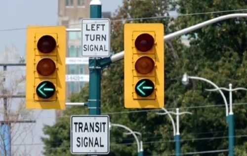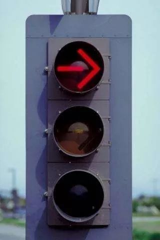 如圖所示,當帶有箭頭的綠色信號燈亮起時,你應該: