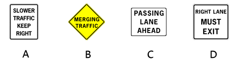 您從一個彎曲下坡的坡道駛高速公路。你應當: